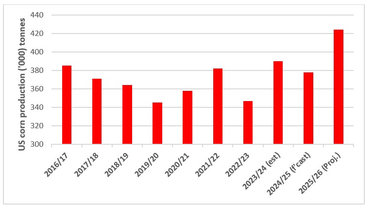 This chart shows US corn production over the past decade. Source: International Grains Council (IGC).